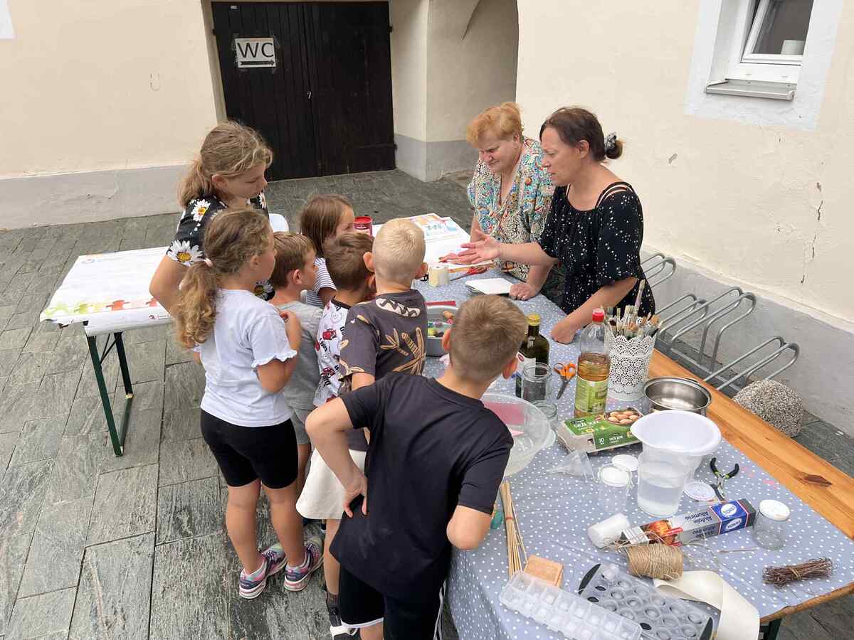 Vsak otrok je imel priložnost, da izrazi svojo domišljijo in ustvari nekaj čisto svojega. Veselje, barve in ustvarjalni smeh so napolnili grajski ambient ter dogajanje spremenili v pravo malo poletno delavnico na prostem.