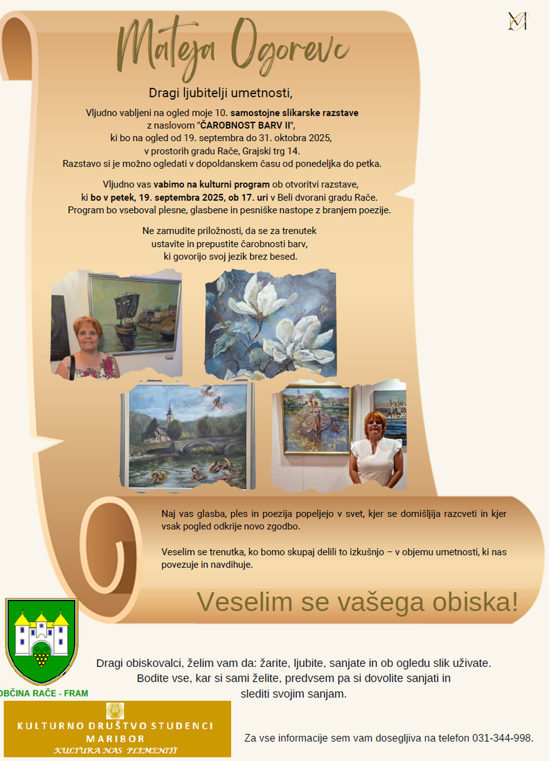 Otvoritev bo v petek, 19. 9. 2025, ob 17.00 v Beli dvorani gradu Rače.