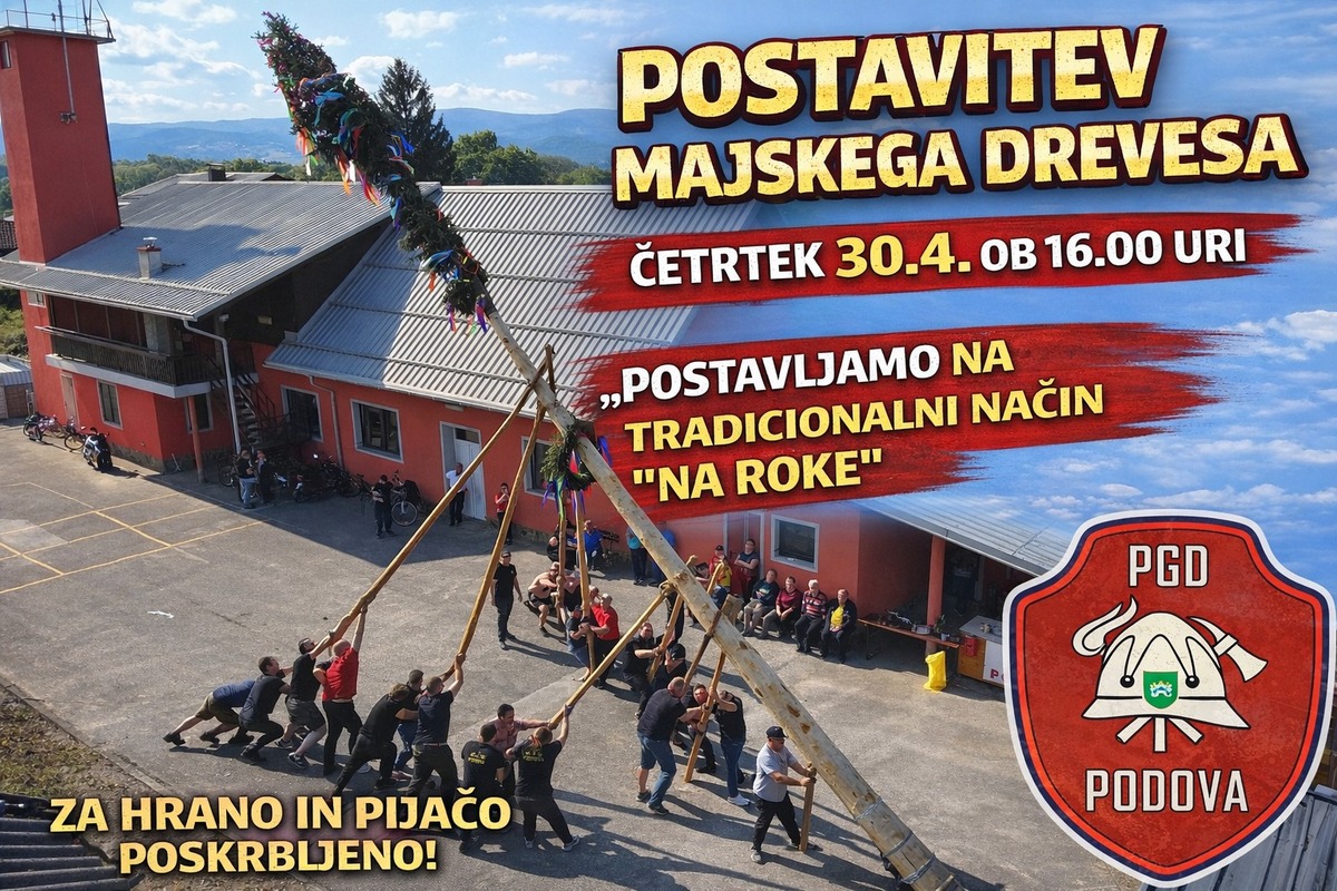 Vabimo vas na že tradicionalno postavljanje majskega drevesa, ki bo pred gasilskim domom v Podovi, v četrtek 30.4. ob 16.00 uri. Postavljamo ga na star način '' na roke '', zato bo vsak par rok prav prišel!