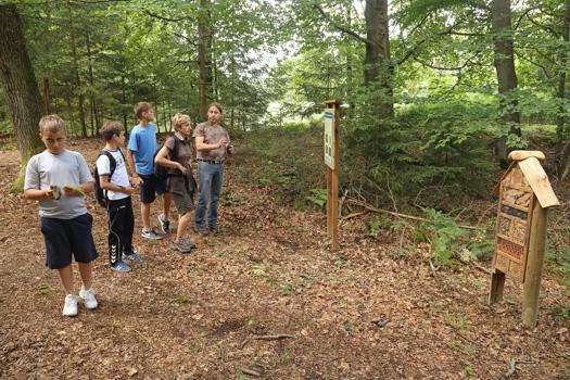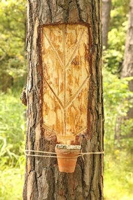 This year, we have marked another trail through the Landscape Park, which is dedicated to the forest, the park’s most prevalent feature. The circular trail begins at the crossroads that leads towards the Turn Ponds, near the Rače Hunting Lodge. At first it follows along the road, then it goes around the lower pond, Turntajht. It is marked with signposts, so anyone can travel along the road without the fear of getting lost. At the start of the trail there is an information board with a trail map. If you happen to arrive by bicycle, you can leave it in the lovely bike stand there. An insect hotel is also located here. You will be able to learn more about it on the trail itself. Along your way around the Turn Ponds, you will get to know the numerous forest birds and trees found there. By the way, be on the lookout for marked trees and a woodpile. The wood found there is not meant for heating but for learning about the different tree species found growing here. You will also see and hear about the resin extraction process. Resin has been extracted here since before World War II and continued for a number of years after it. The extracted resin was bought by and then processed in the factory in Rače which was later renamed Pinus.