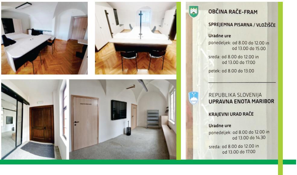 V četrtek, 1. februarja 2024 ob 14. uri se je v prtljičju grada Rače odvijala slovestnost ob odprtju nove sprejemne pisarne Občine Rače-Fram in novih prostorov Krajevnega urada Rače (Upravne enote Maribor). Namen novih prostorov je v prvi vrsti omogočiti gibalno oviranim osebam dostop do upravnih prostorov občine in Krajevnega urada Rače. Prav tako smo uredili še sanitarije za obiskovalce in invalide ter skupne funkcionalne prostore.
